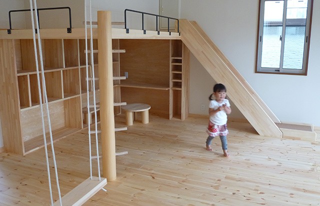 ブランコや滑り台をLDKに取り込んだ ノビノビ子育てリフォーム。