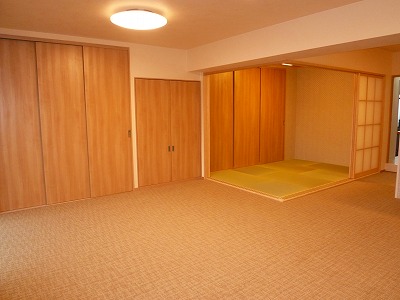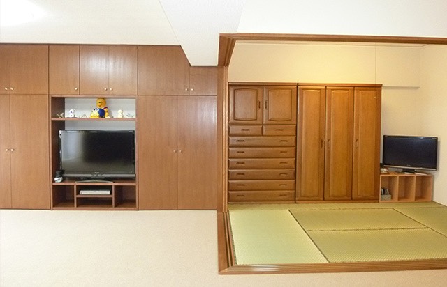 お手持ちの家具と合わせた壁面収納。 全開口の間仕切り建具で広々快適。