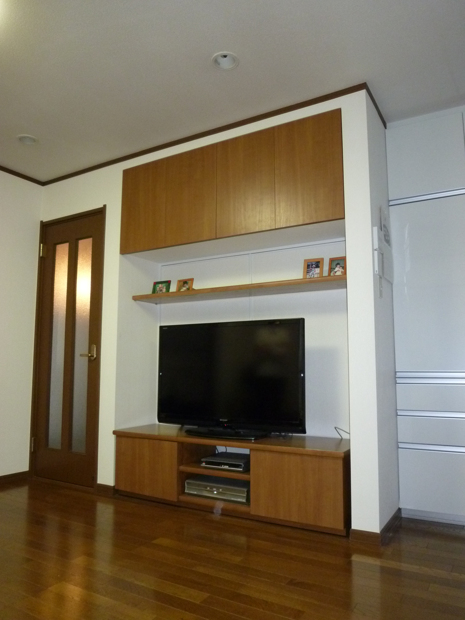 押し入れだったところを TVボードに。 しかも、びっくり!秘密の収納場所も。